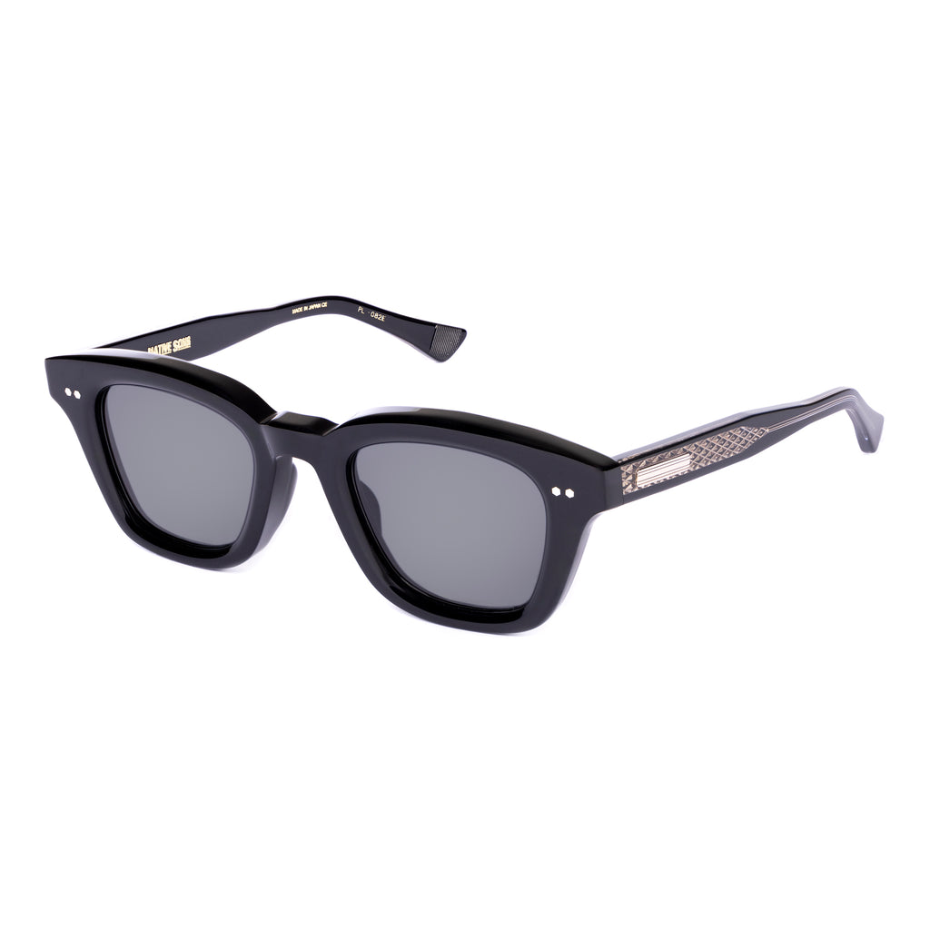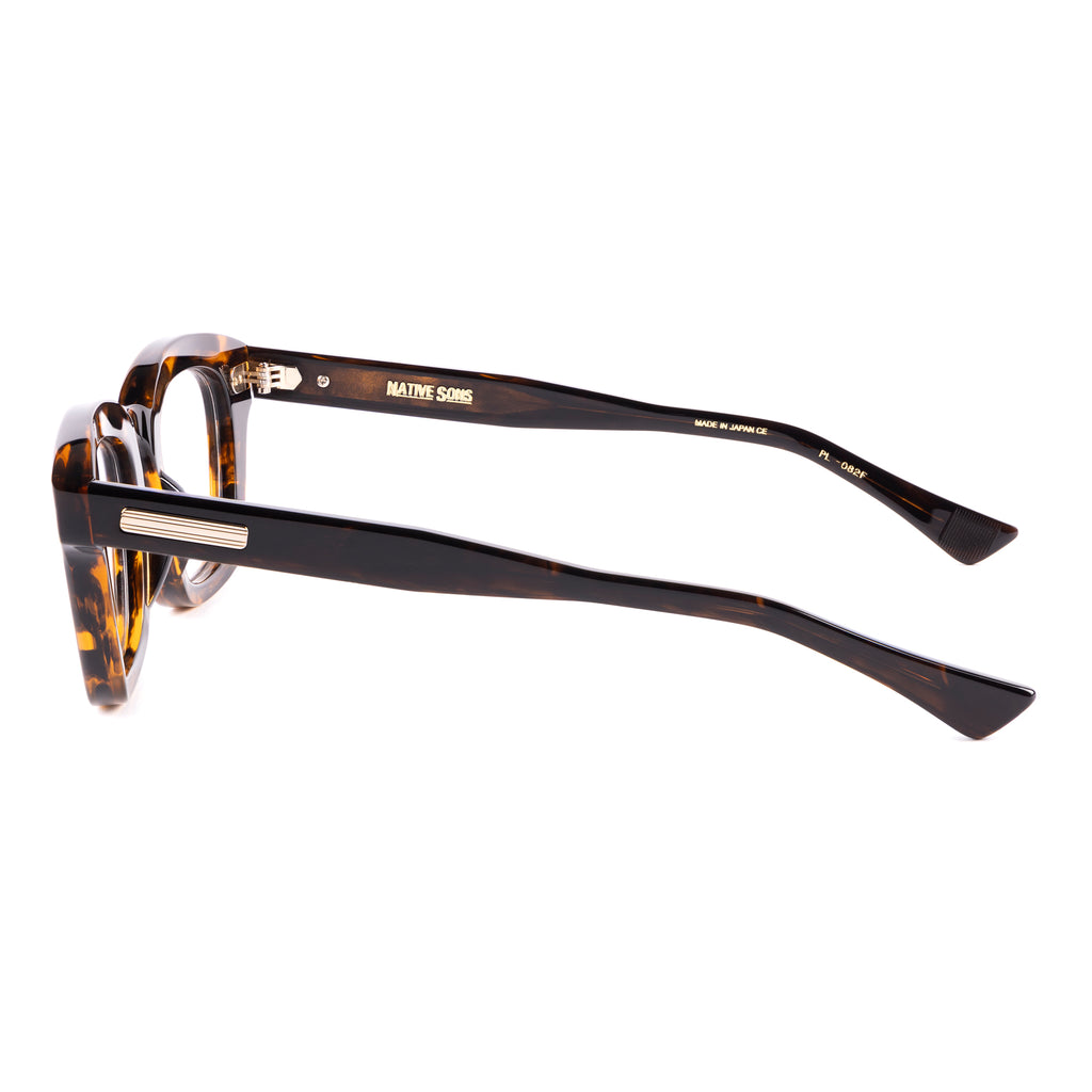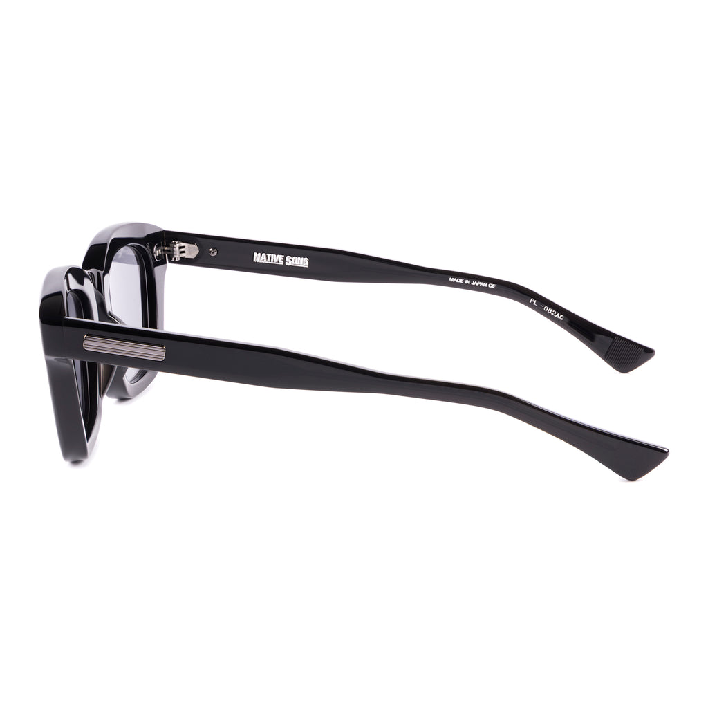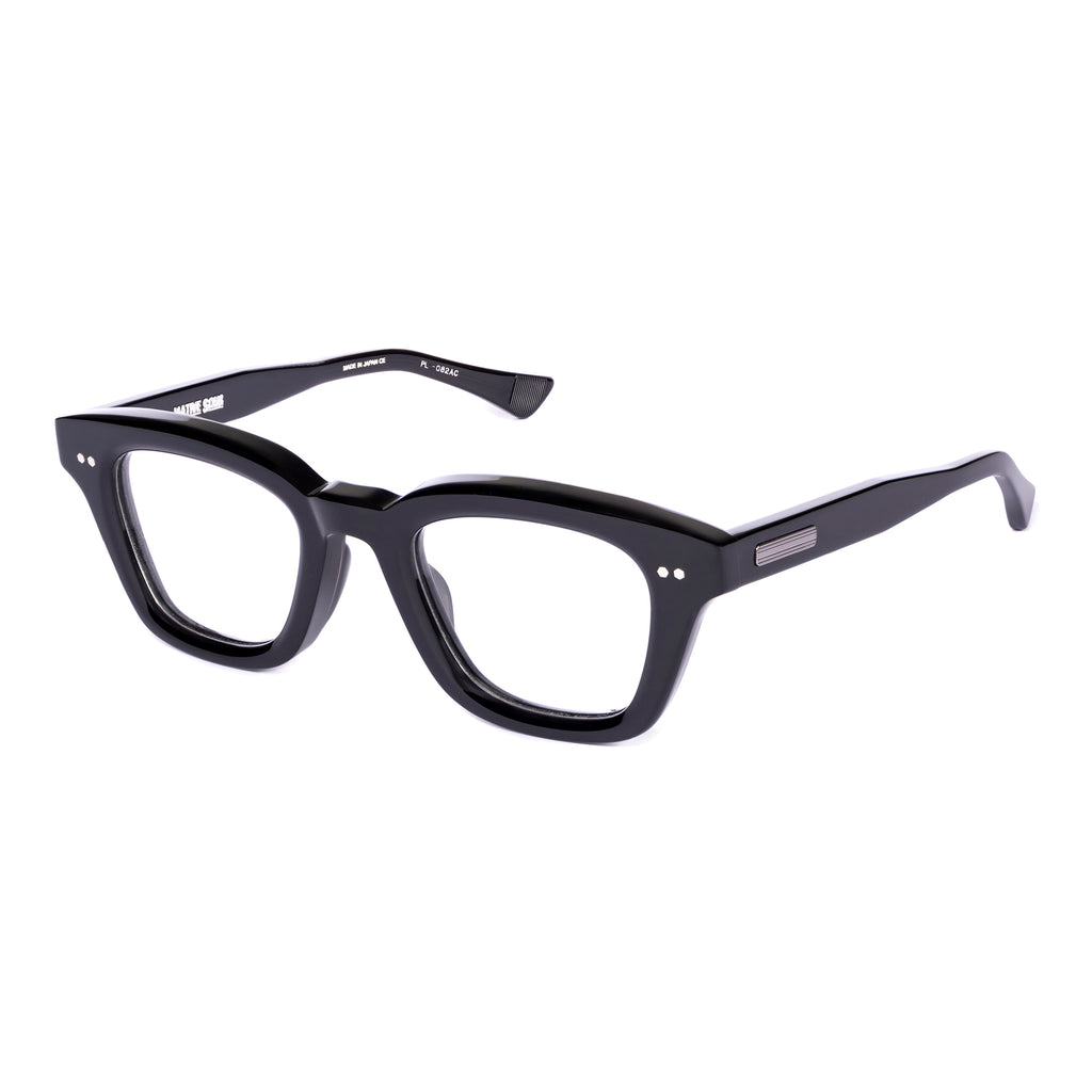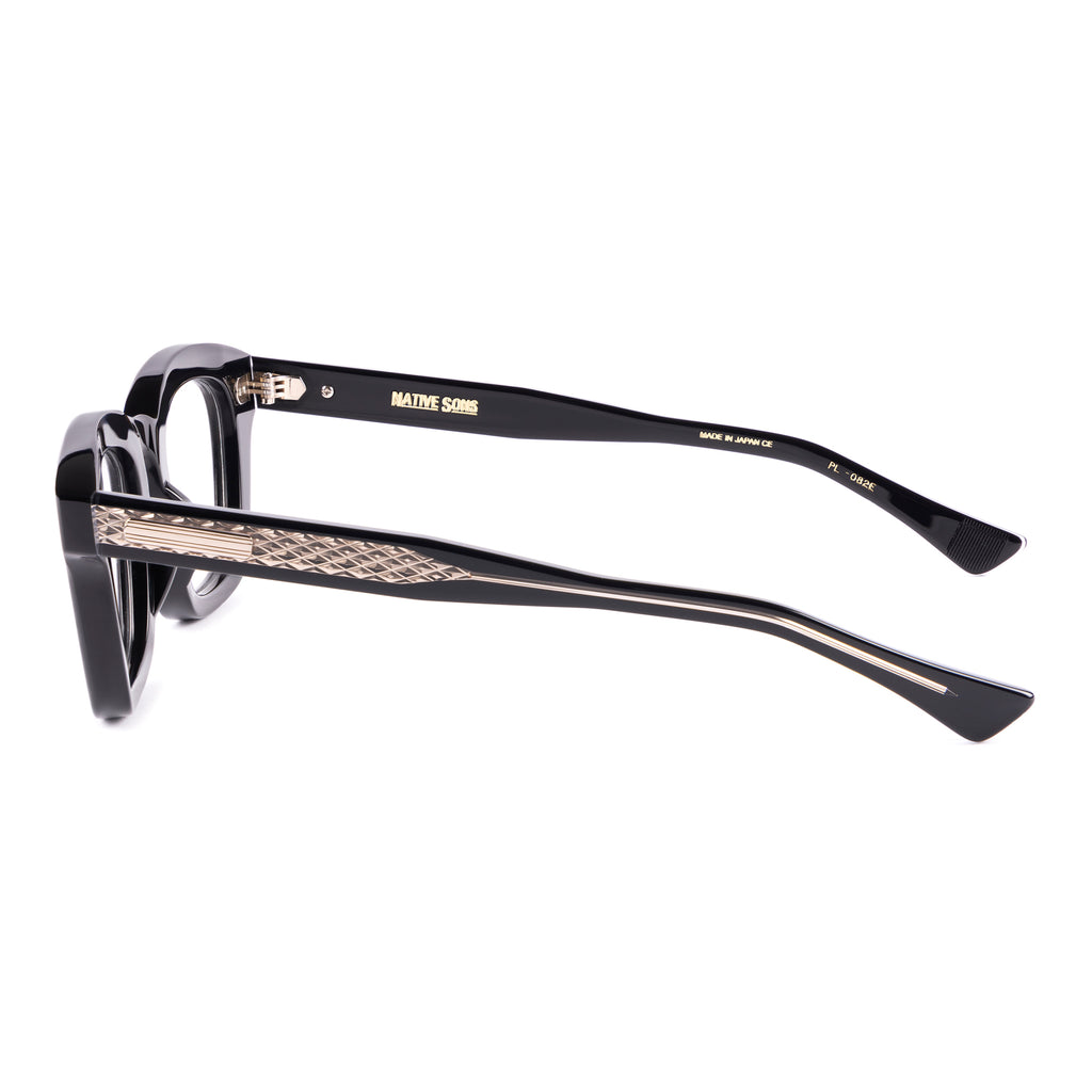 テンプルは後方に向かって四角くなり、形を整えながら耳に沿うように上下のバランスの違うテーパーラインを描いています。