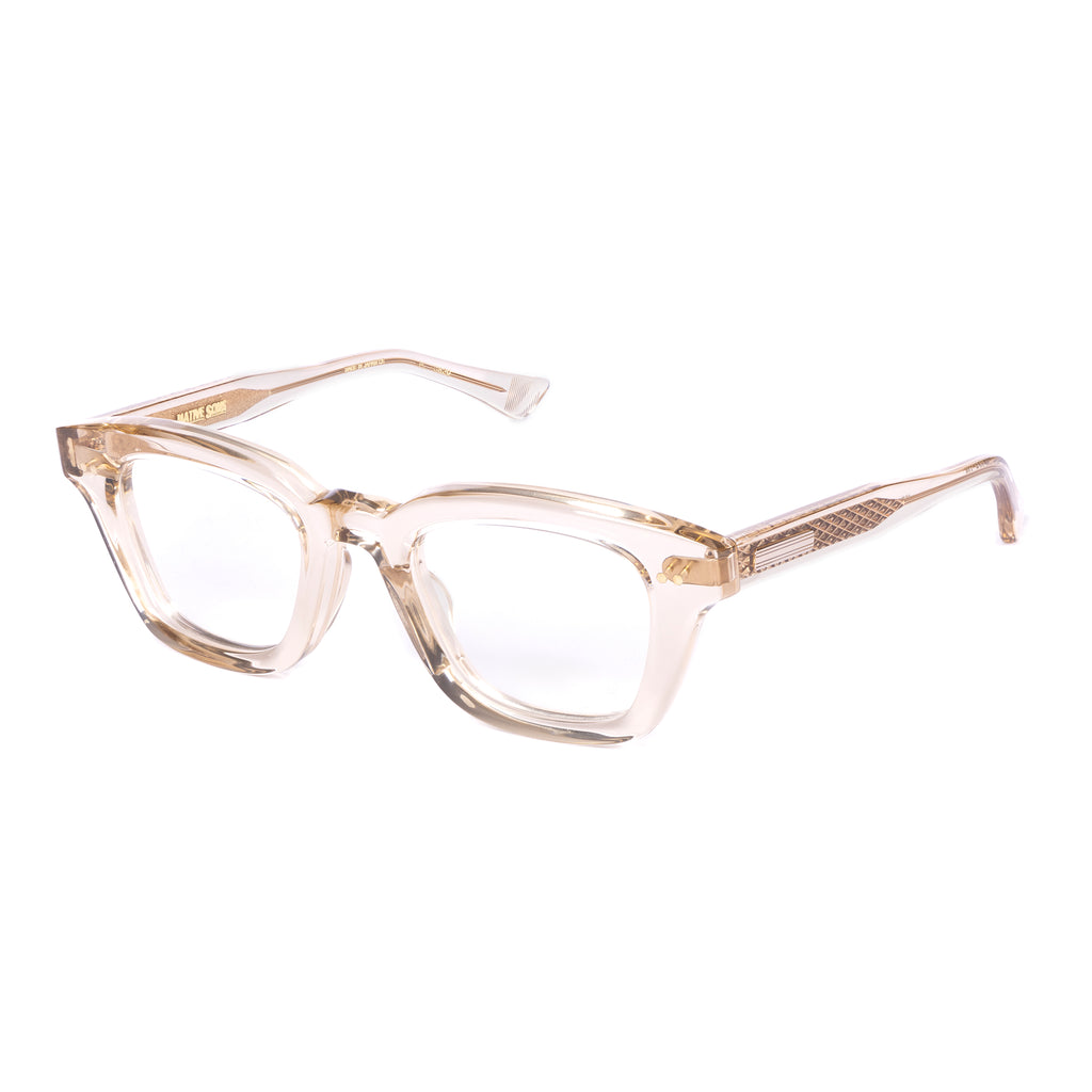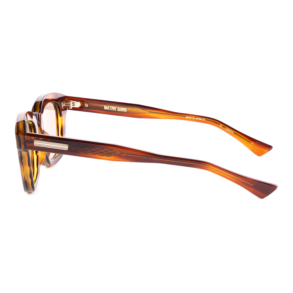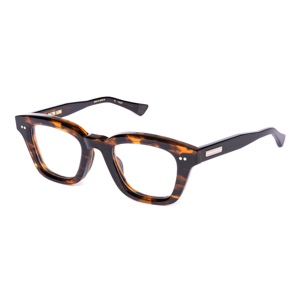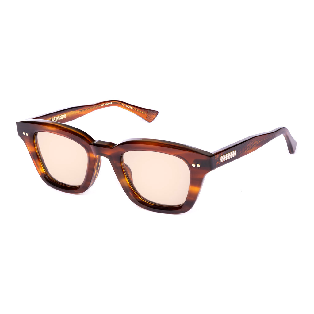 テンプルは後方に向かって四角くなり、形を整えながら耳に沿うように上下のバランスの違うテーパーラインを描いています。