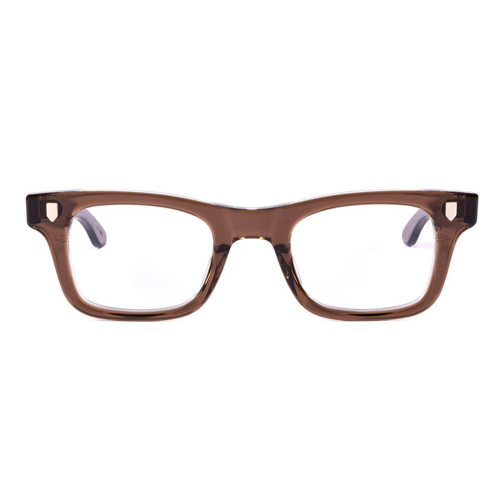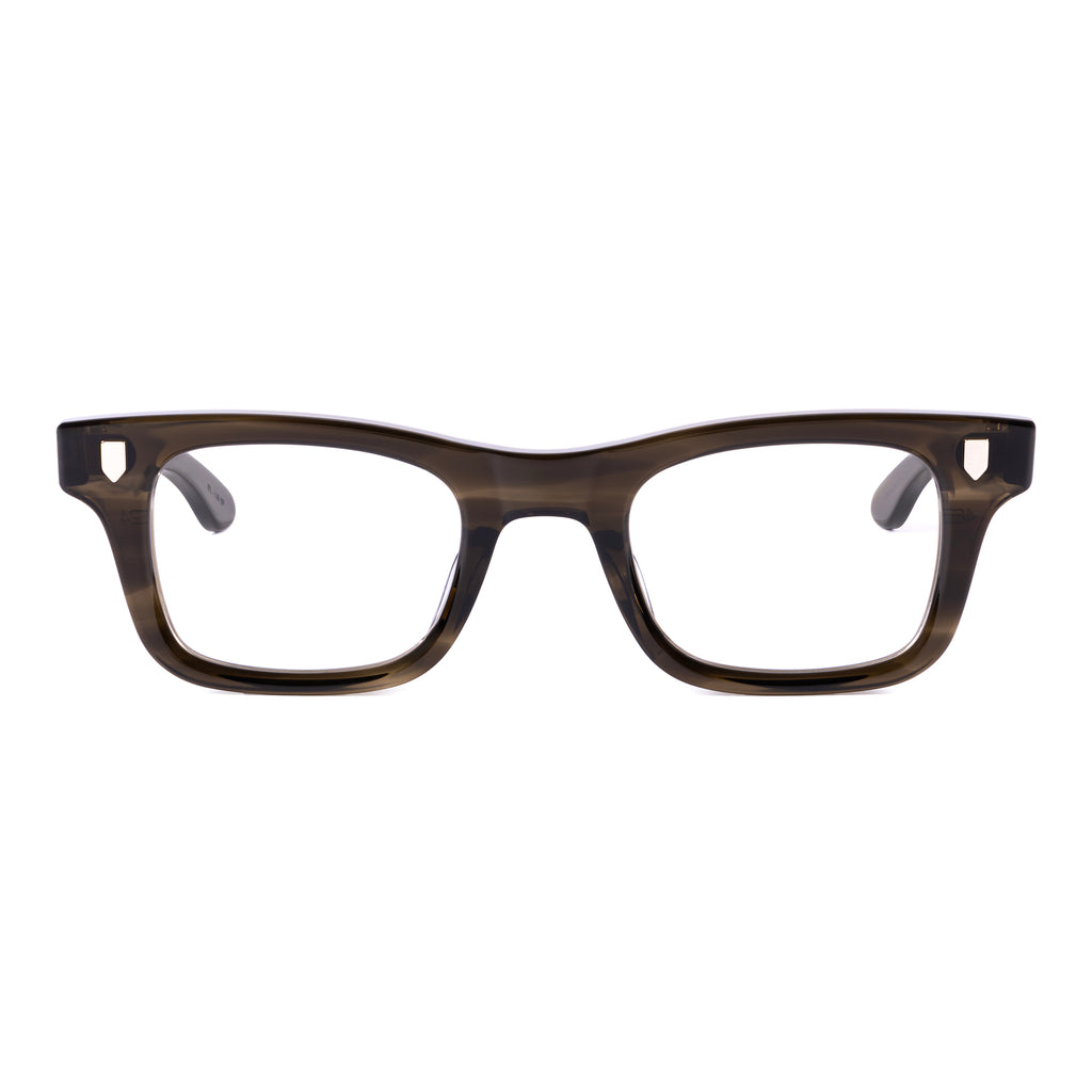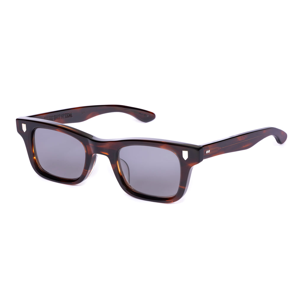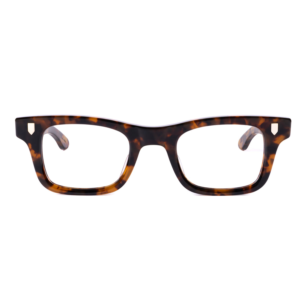 滑らかでやや丸みを帯びたウェリントン型。ブロウラインは内側にカーブし、ノーズブリッジで少し下がる。外側のリムラインは15度の角度で内側に向かって下がっており、非常に洗練されたライン。ビューティーマークは弾丸がモチーフになっている。