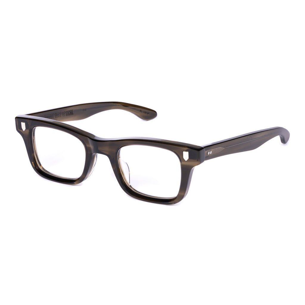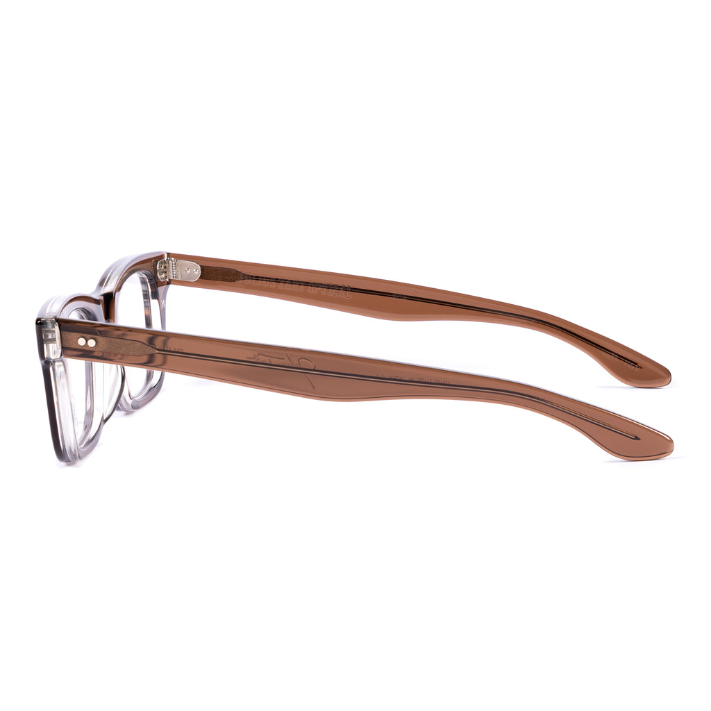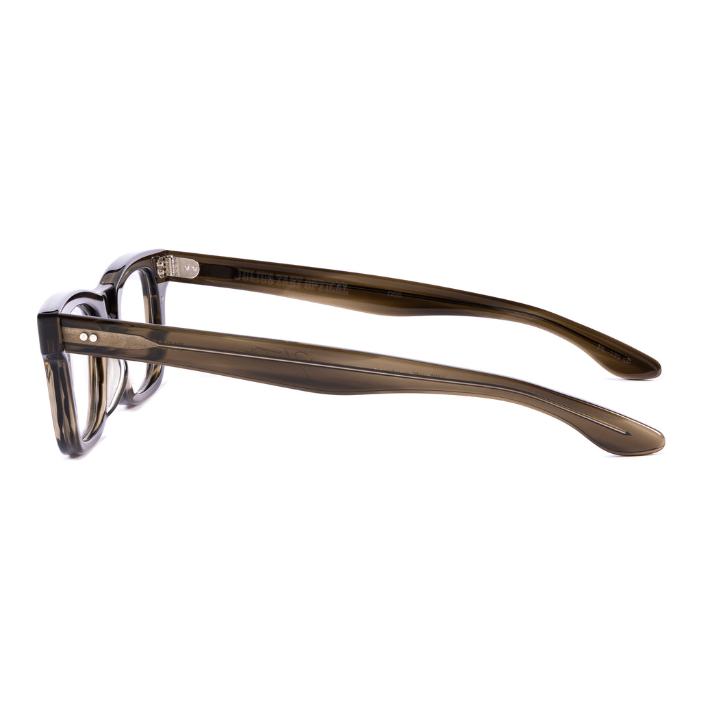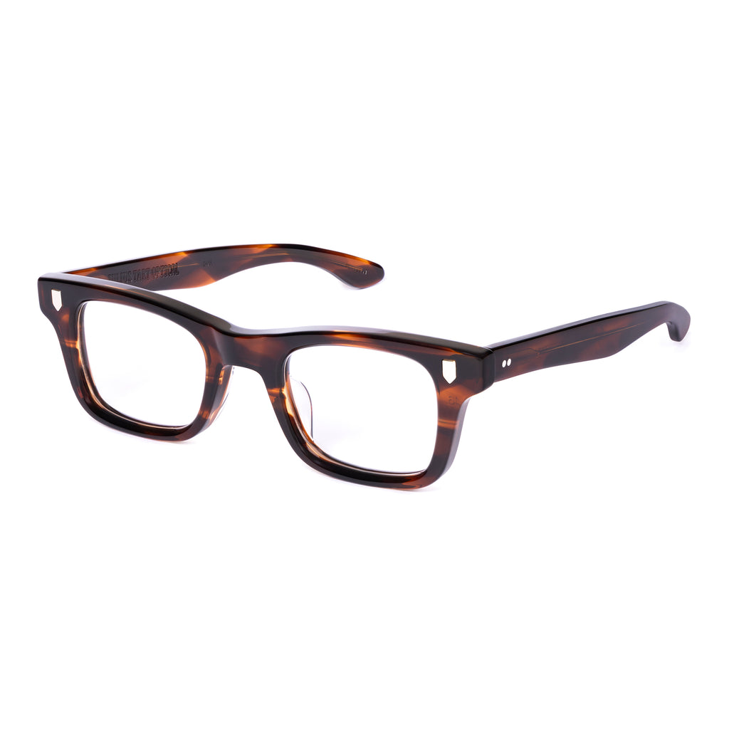 滑らかでやや丸みを帯びたウェリントン型。ブロウラインは内側にカーブし、ノーズブリッジで少し下がる。外側のリムラインは15度の角度で内側に向かって下がっており、非常に洗練されたライン。ビューティーマークは弾丸がモチーフになっている。