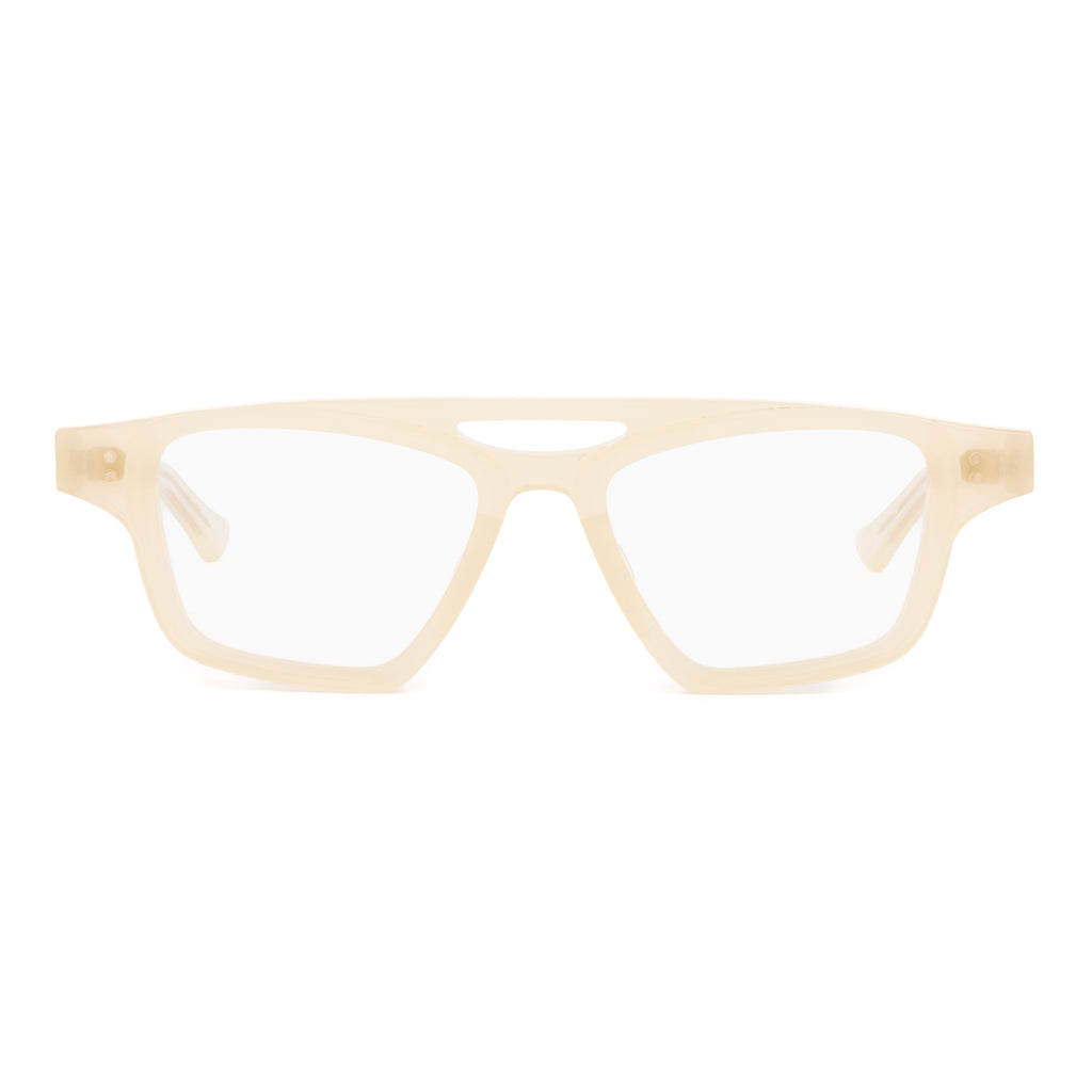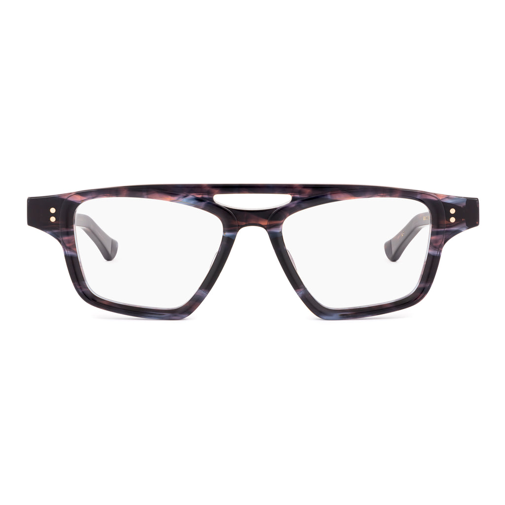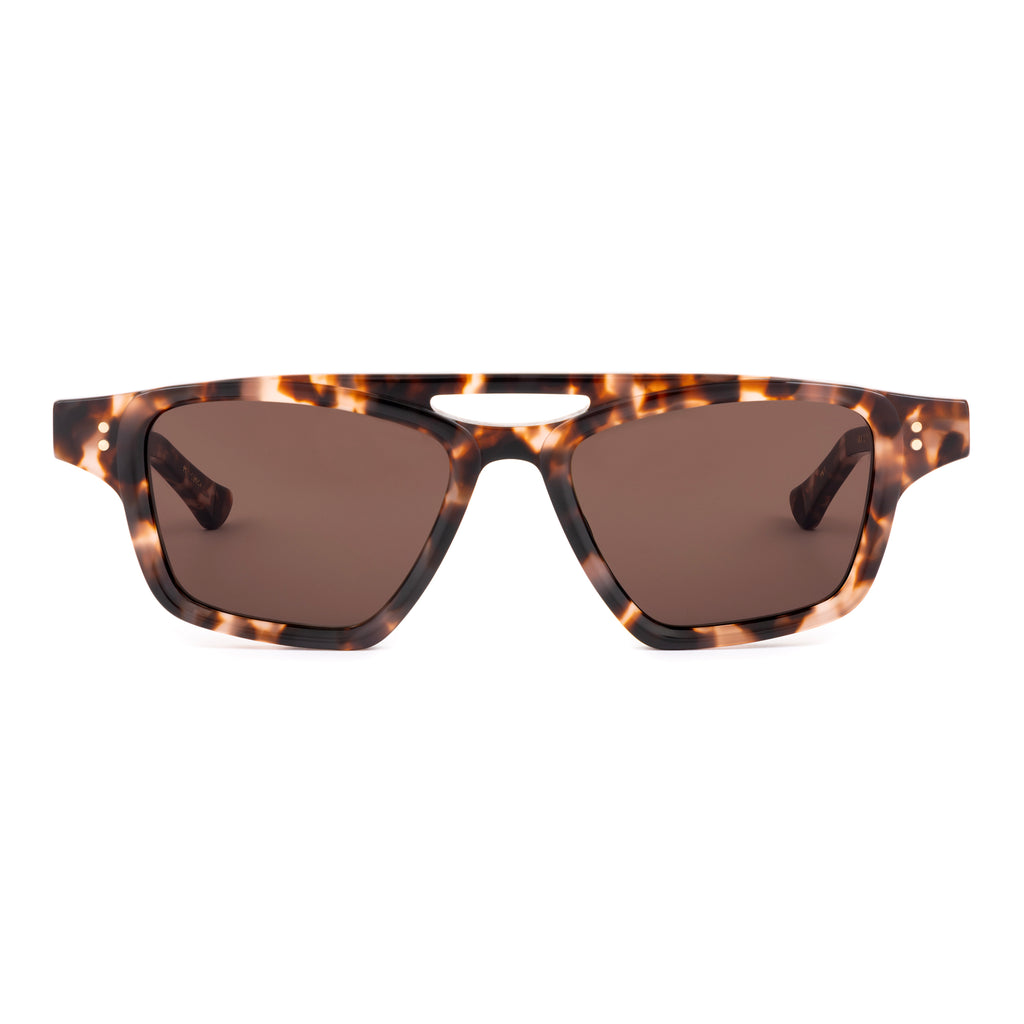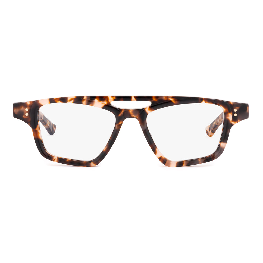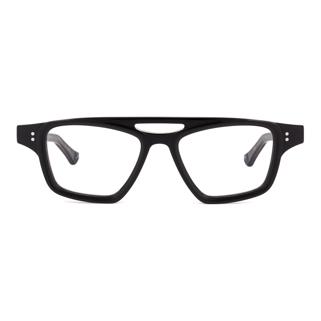 The double bridge and the wide V-shaped rims create a bold impression, while the slim acetate construction adds a touch of softness.