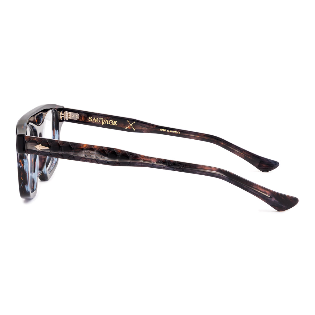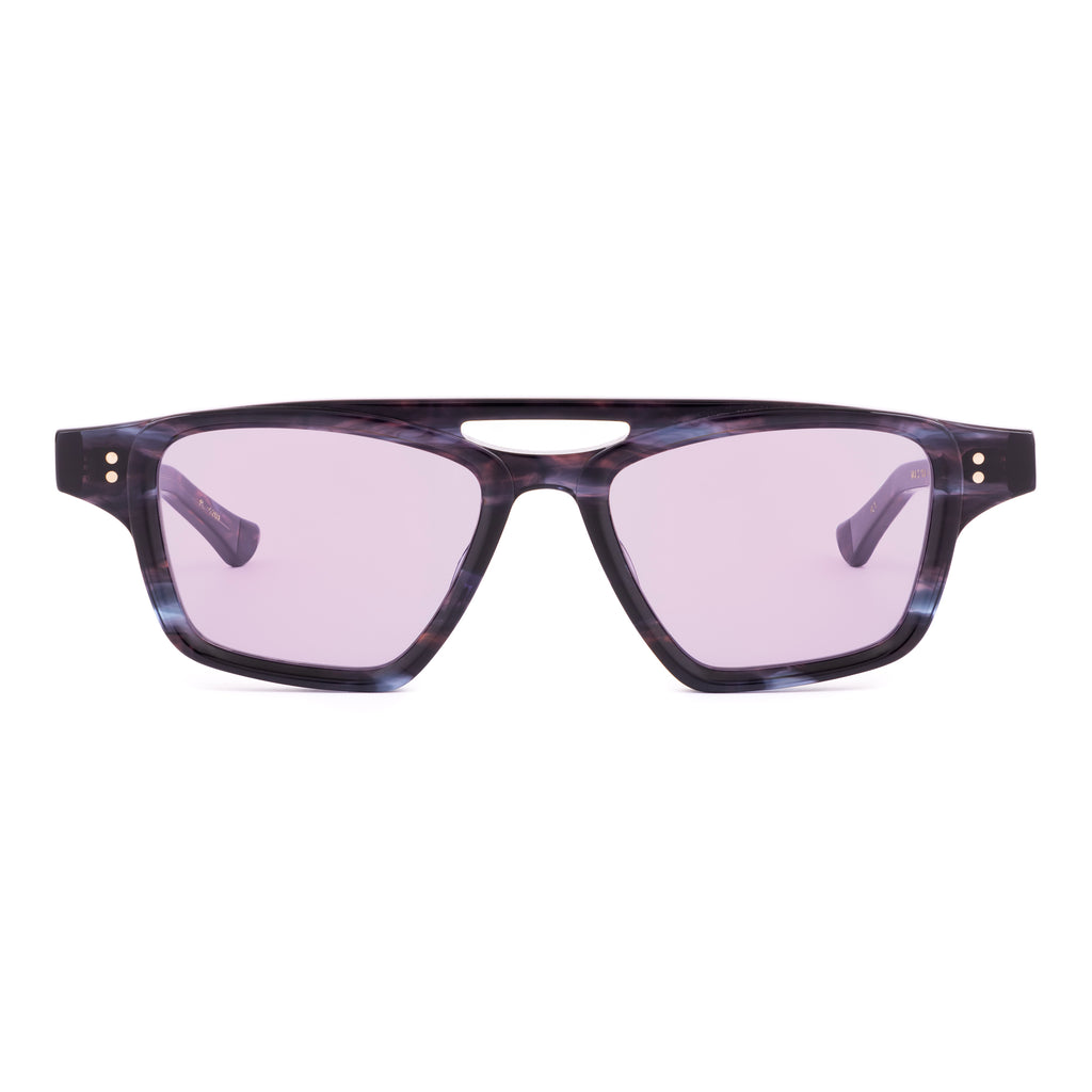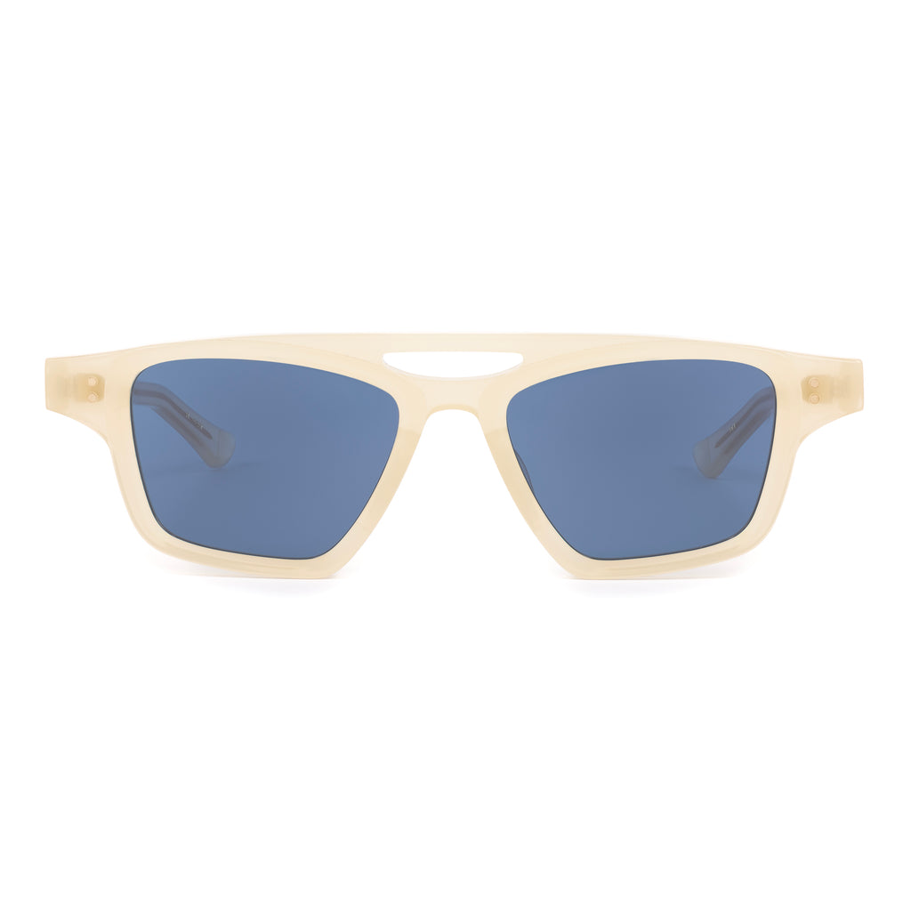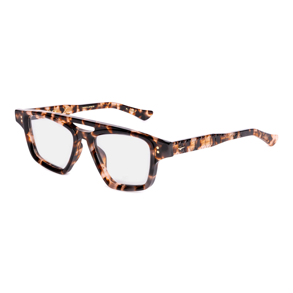 The double bridge and the wide V-shaped rims create a bold impression, while the slim acetate construction adds a touch of softness.