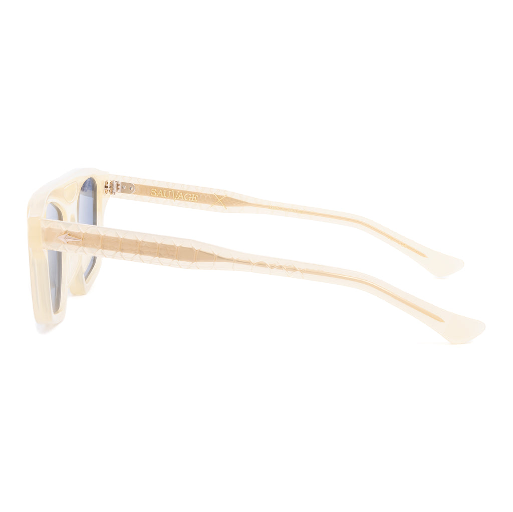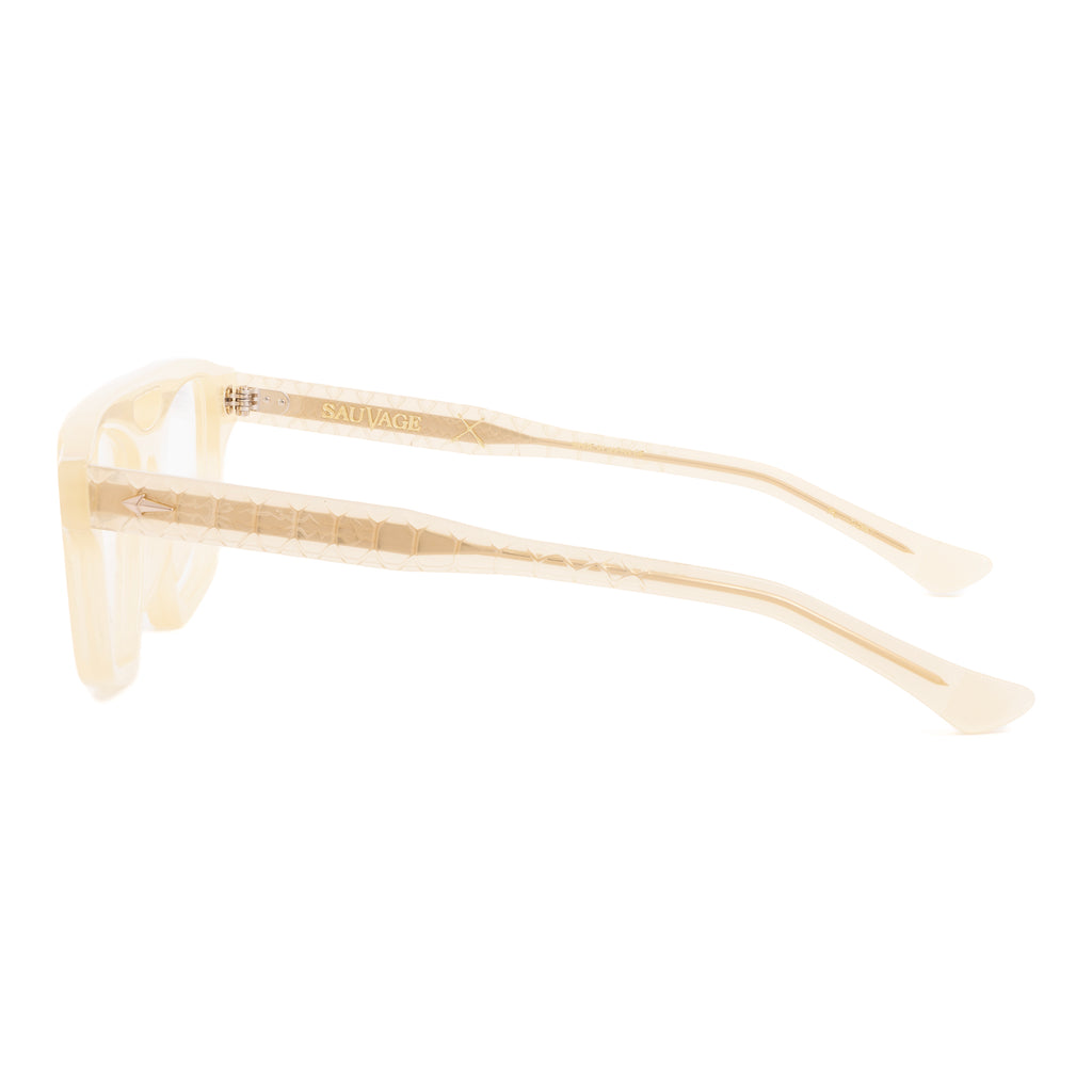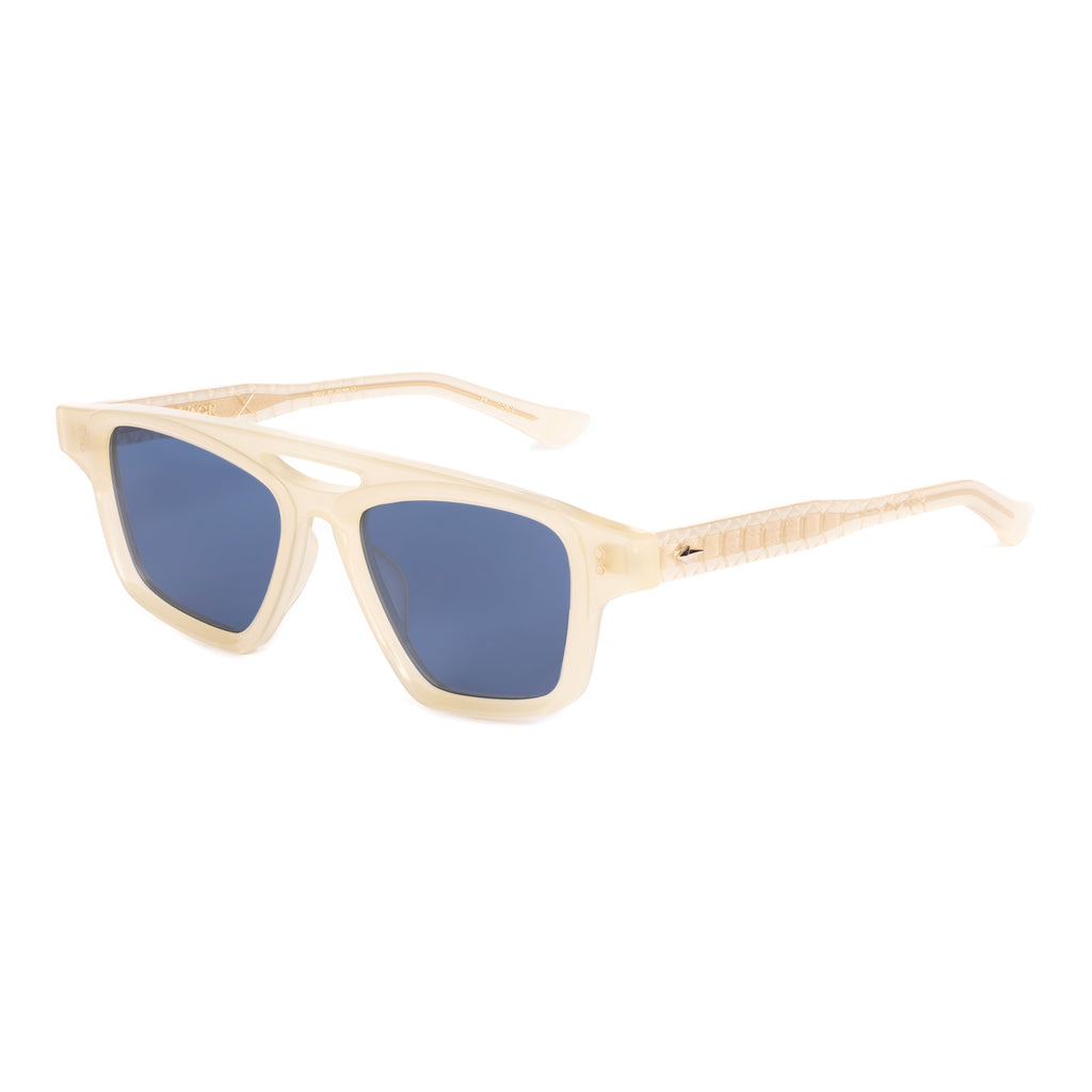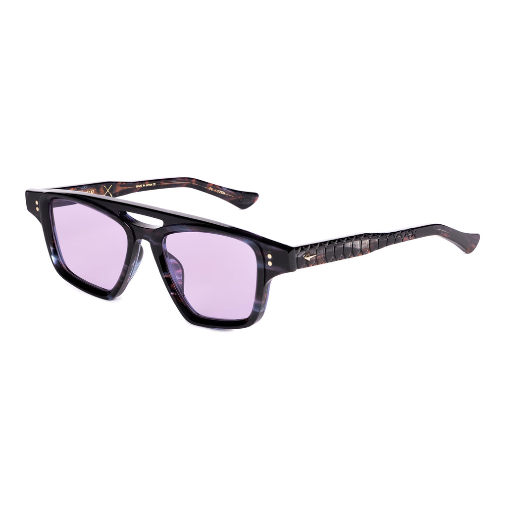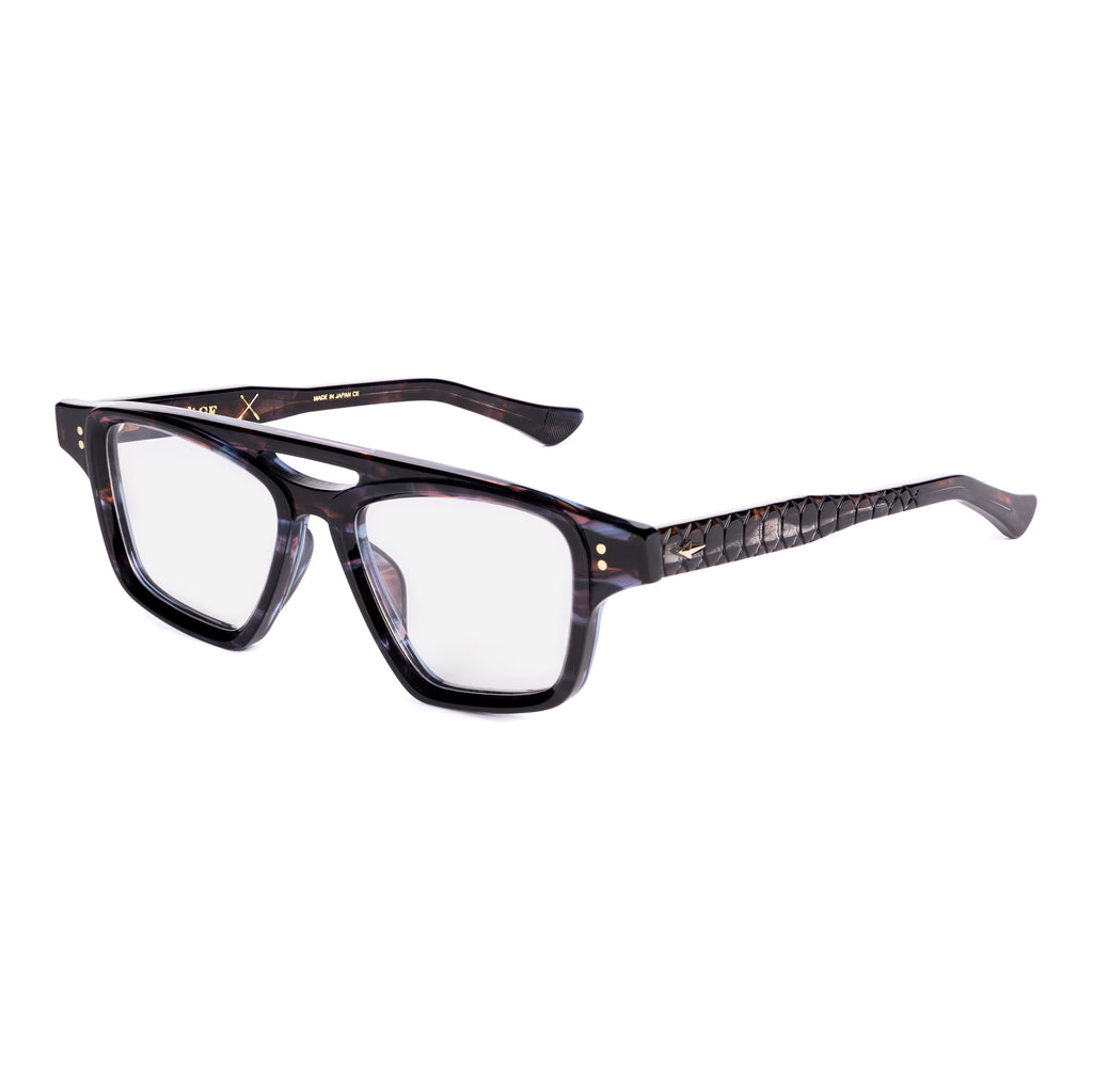 The double bridge and the wide V-shaped rims create a bold impression, while the slim acetate construction adds a touch of softness.