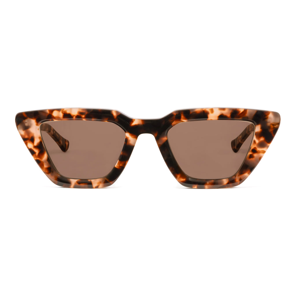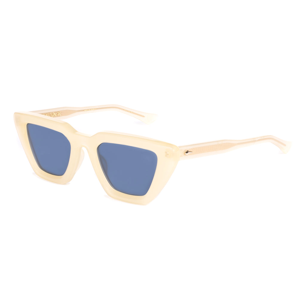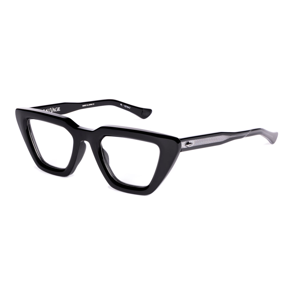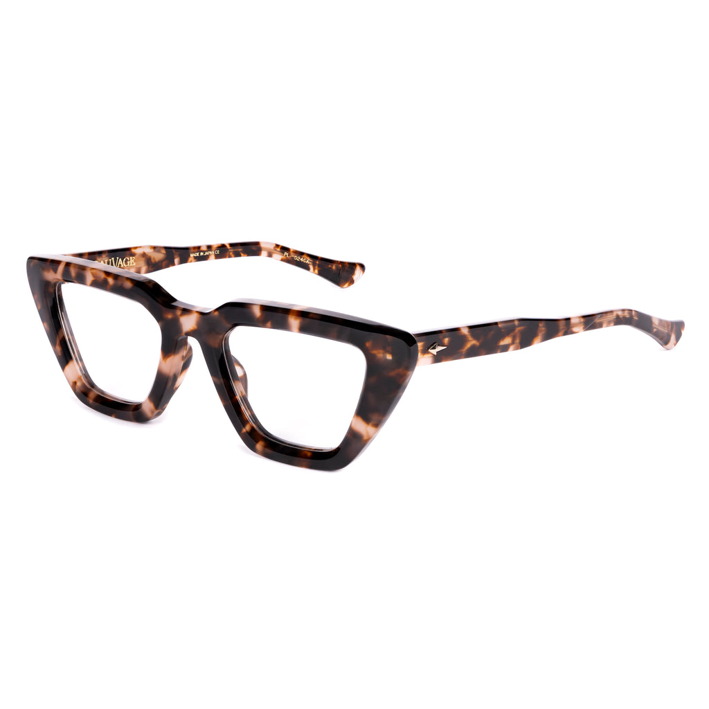 A trapezoidal shape frame drawn with straight lines, features thickened rims at the temples that are inspired by the swan's tail.